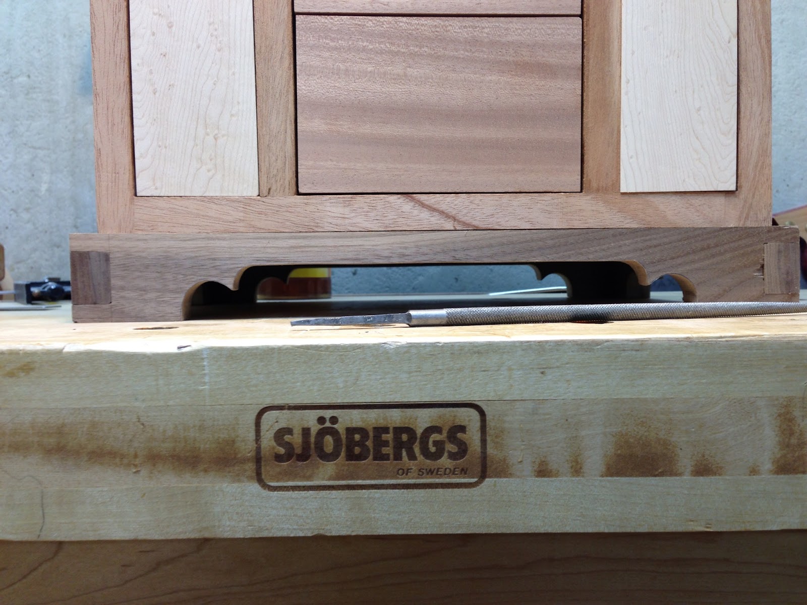 With the case and drawers assembled, my thoughts return (as if they ever left) to the "feet" or base. The "experiment" was not a success in my opinion and I even thought about going with no base at all. But my good friend Tim gave a suggestion that I decided to try and I believe I have a winner. Thanks, Tim!